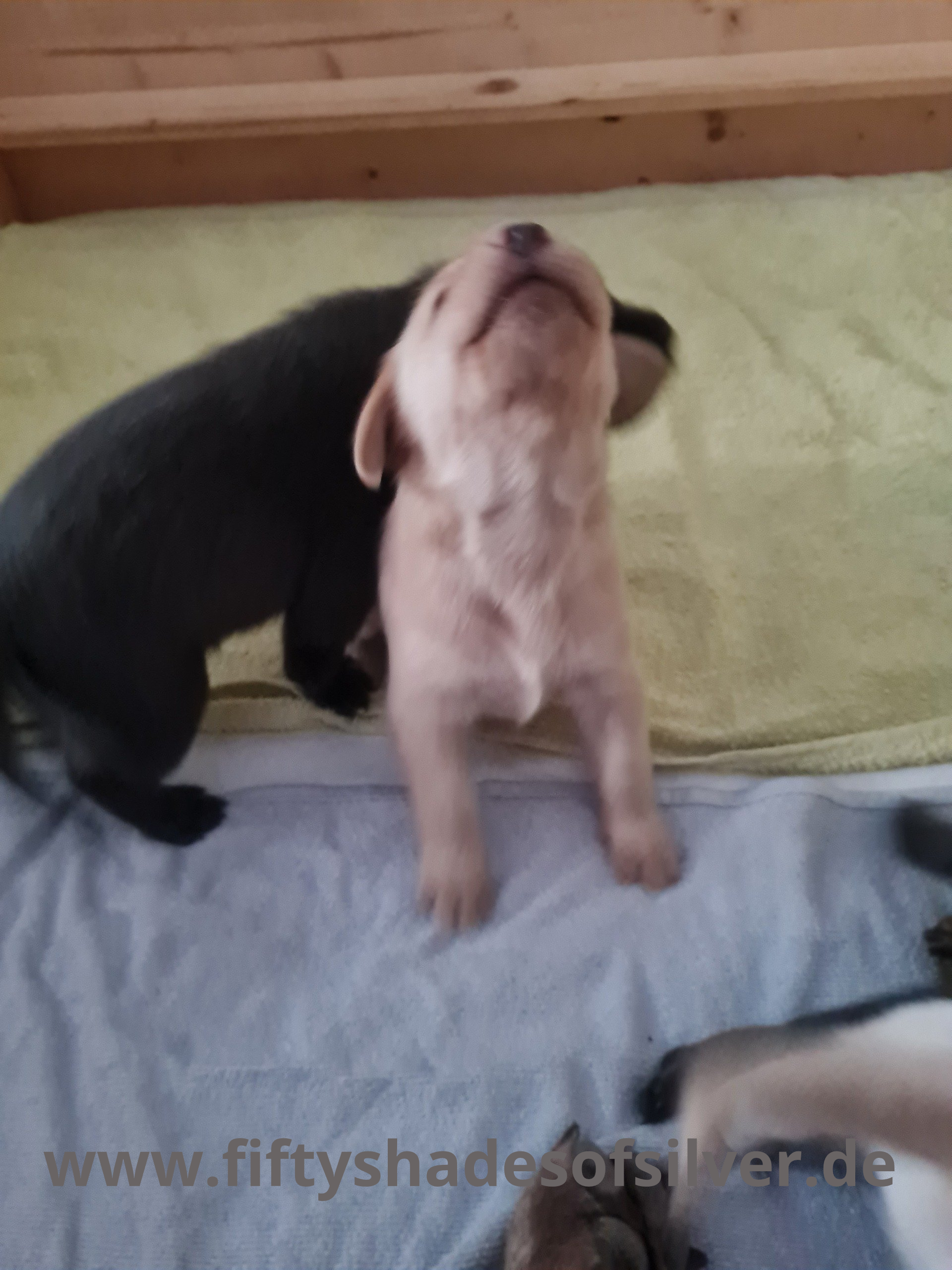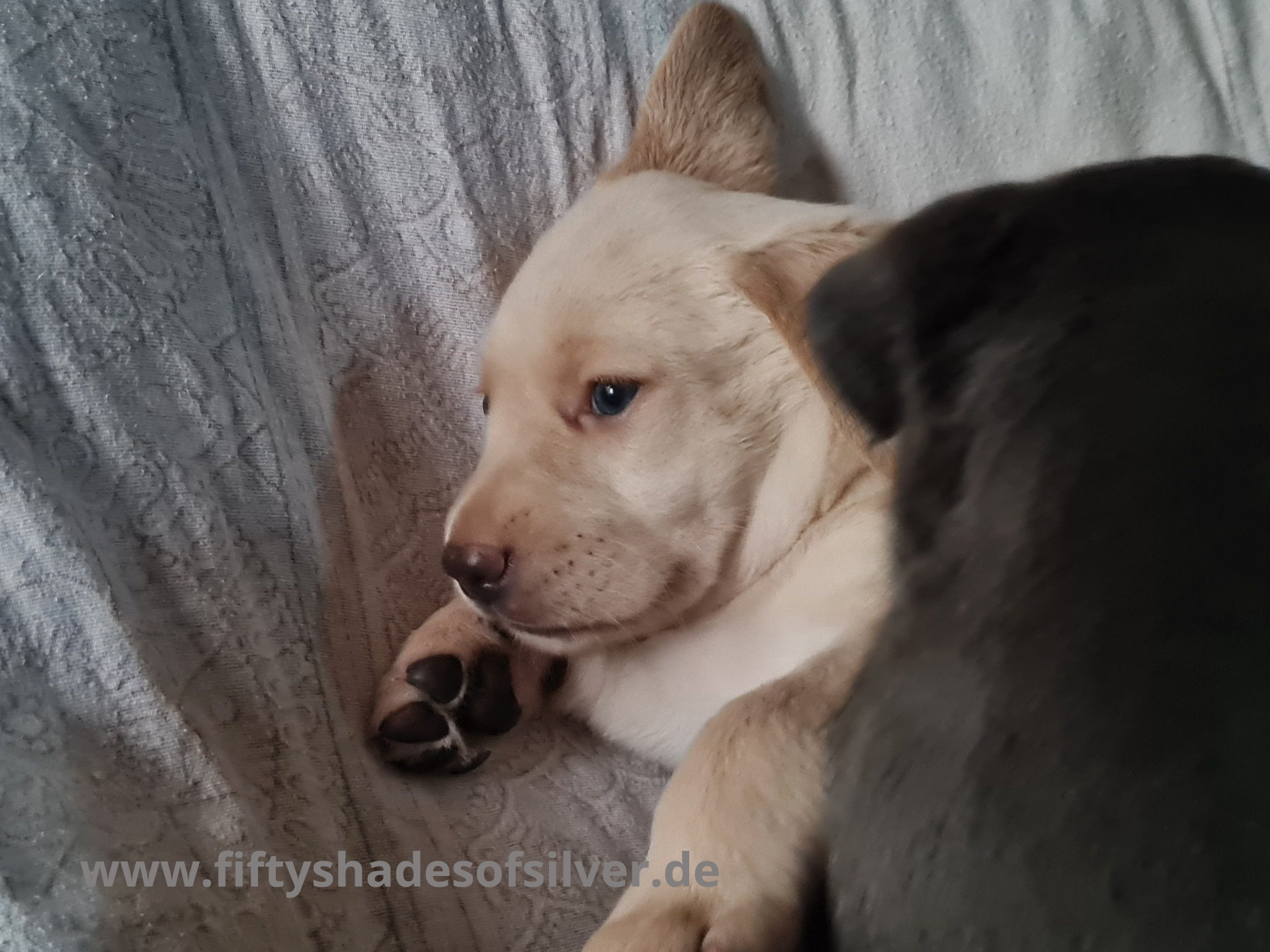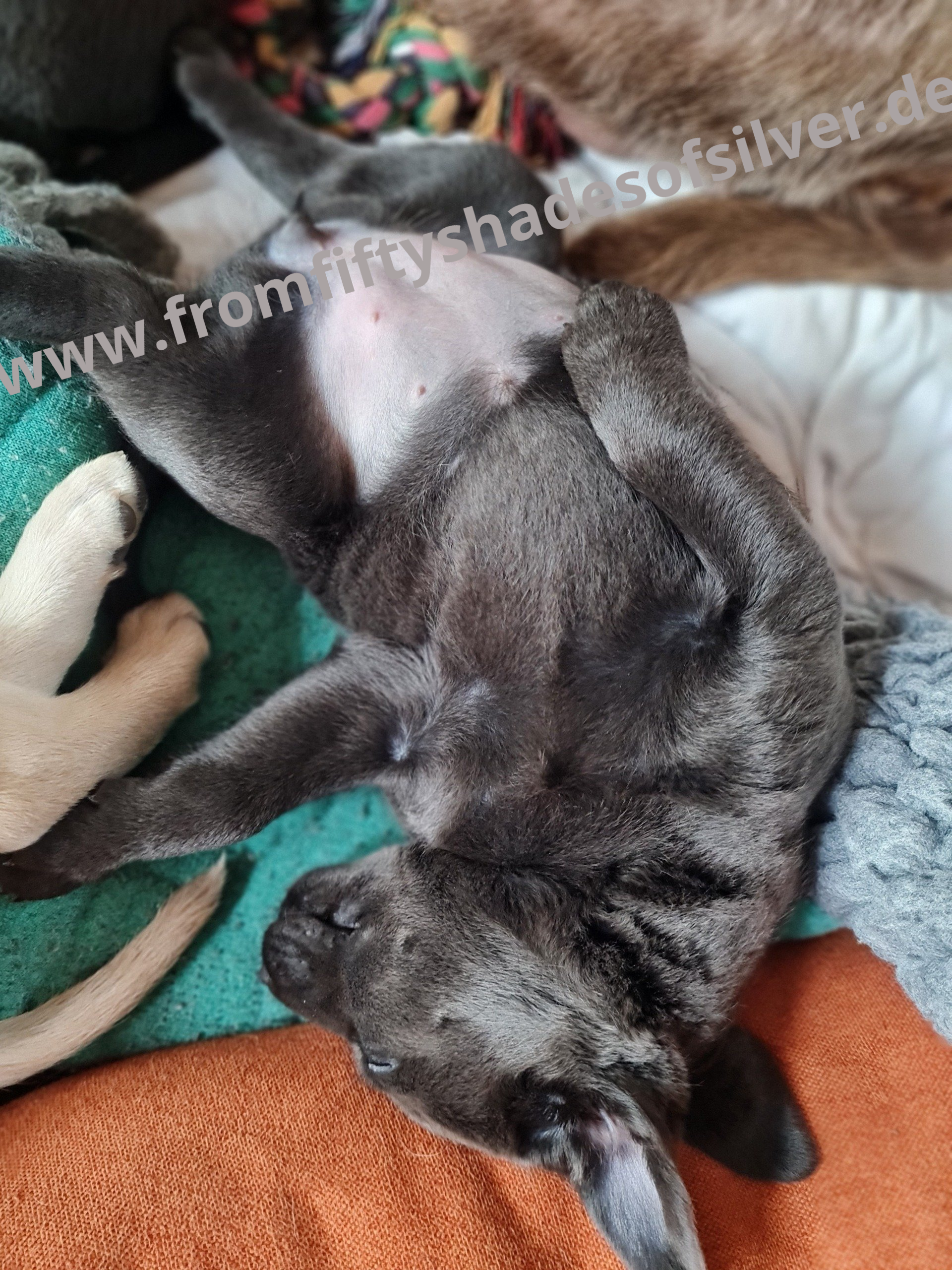 Es ist zu schön zu beobachten, wie die Kleinen langsam in unserer Welt ankommen, wenn sie Augen und Ohren öffnen, ihre Umgebung wahrnehmen und uns. 😊 Sie reagieren auf unsere Stimmen, wenn wir uns nähern, schauen sie uns an und kommen heran, um an uns zu schnüffeln und an uns herum zu schlecken. Das ist sooo süß!!!