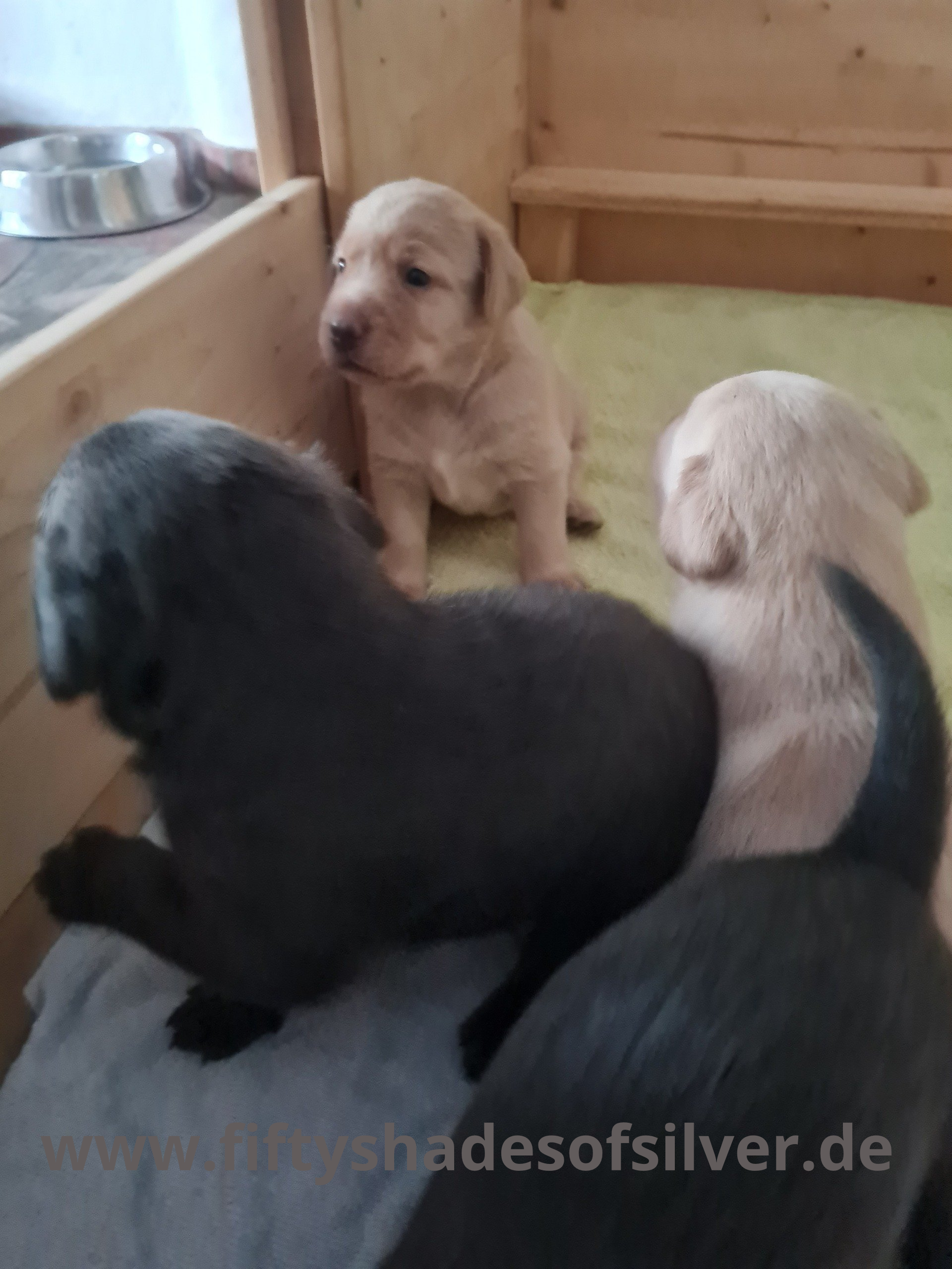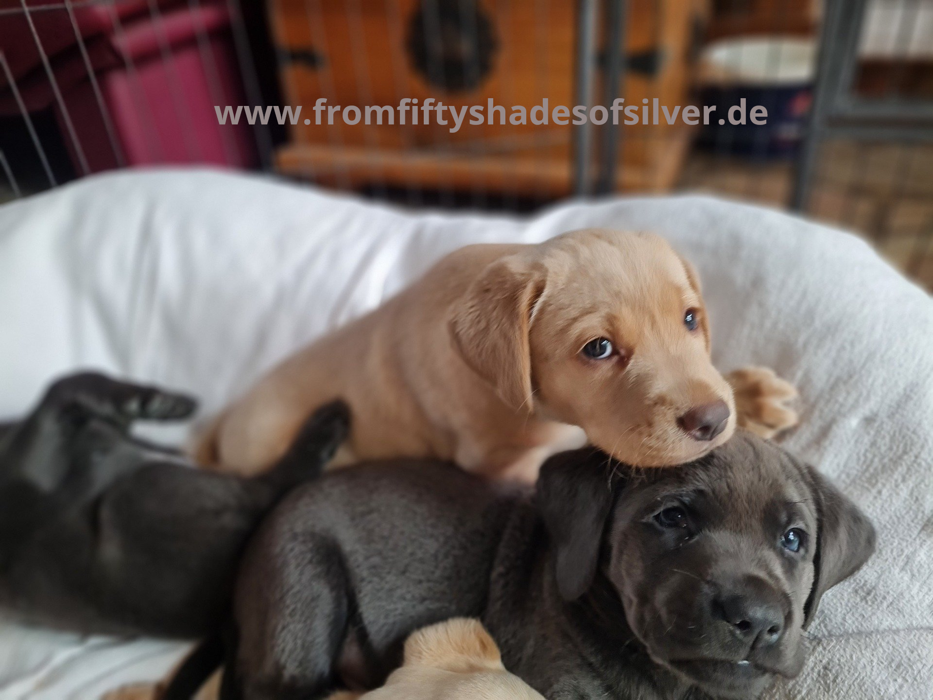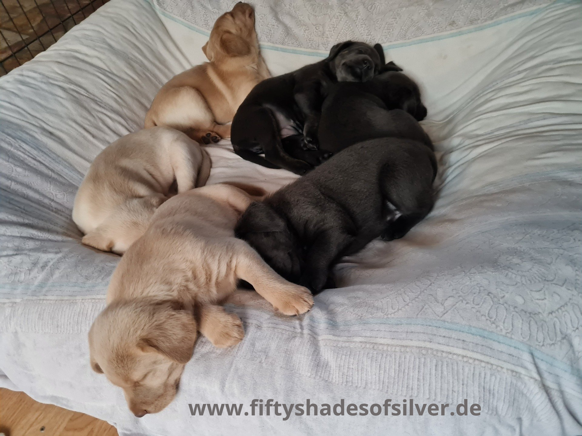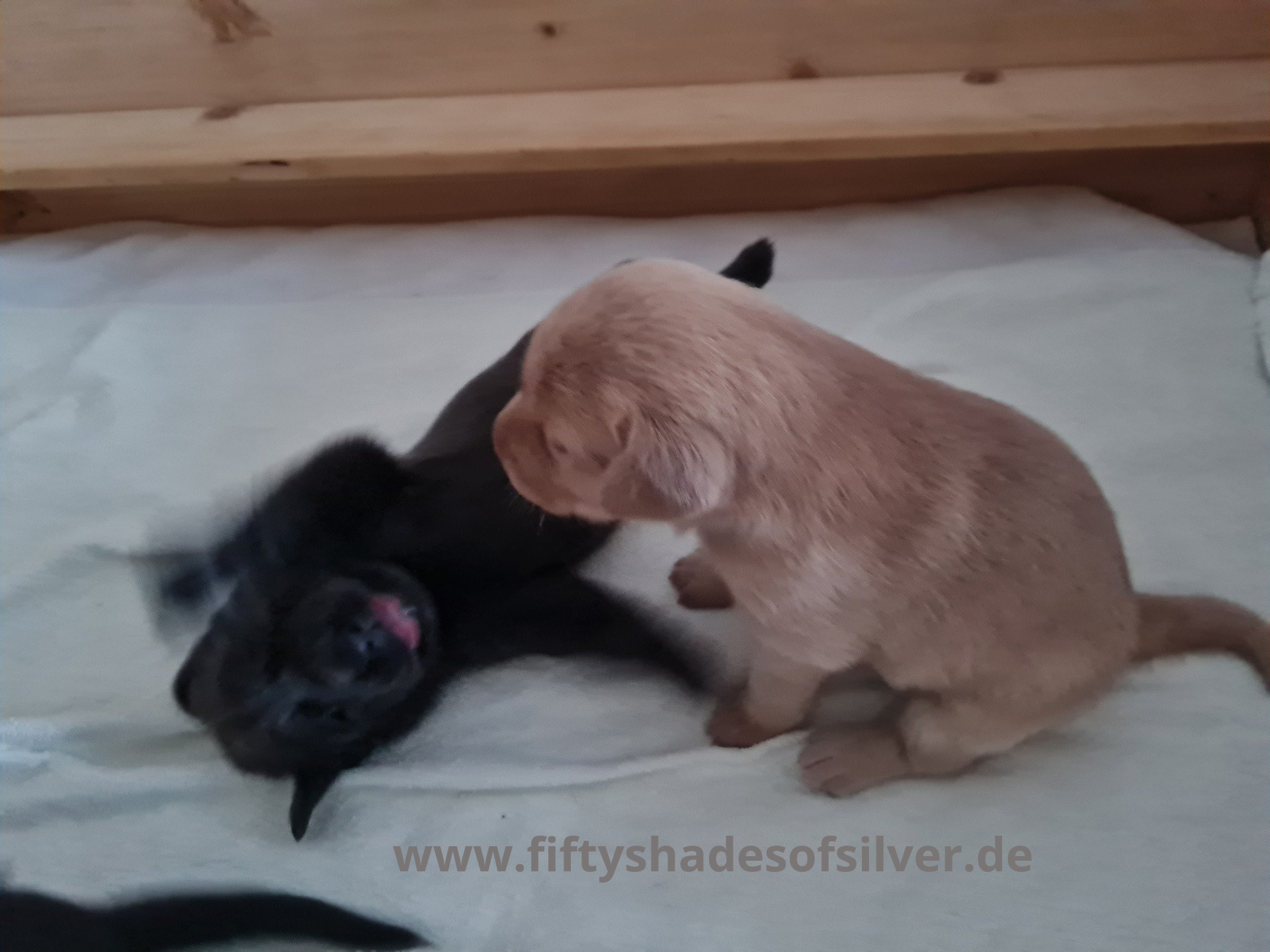 Es ist zu schön zu beobachten, wie die Kleinen langsam in unserer Welt ankommen, wenn sie Augen und Ohren öffnen, ihre Umgebung wahrnehmen und uns. 😊 Sie reagieren auf unsere Stimmen, wenn wir uns nähern, schauen sie uns an und kommen heran, um an uns zu schnüffeln und an uns herum zu schlecken. Das ist sooo süß!!!