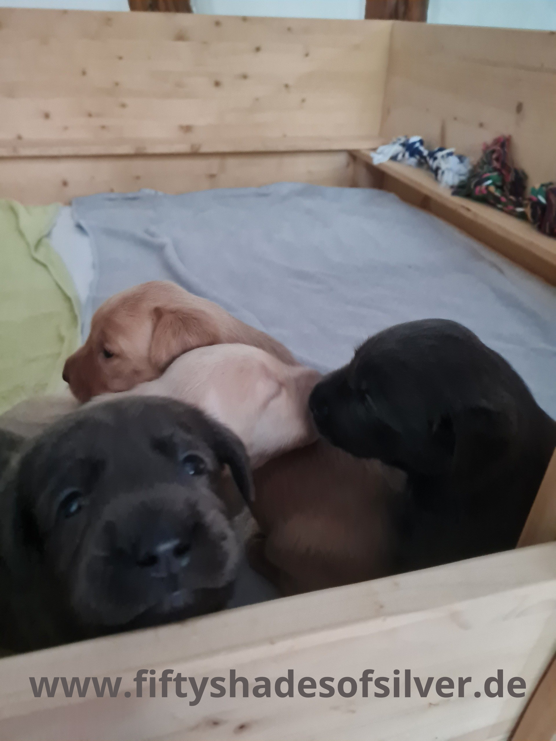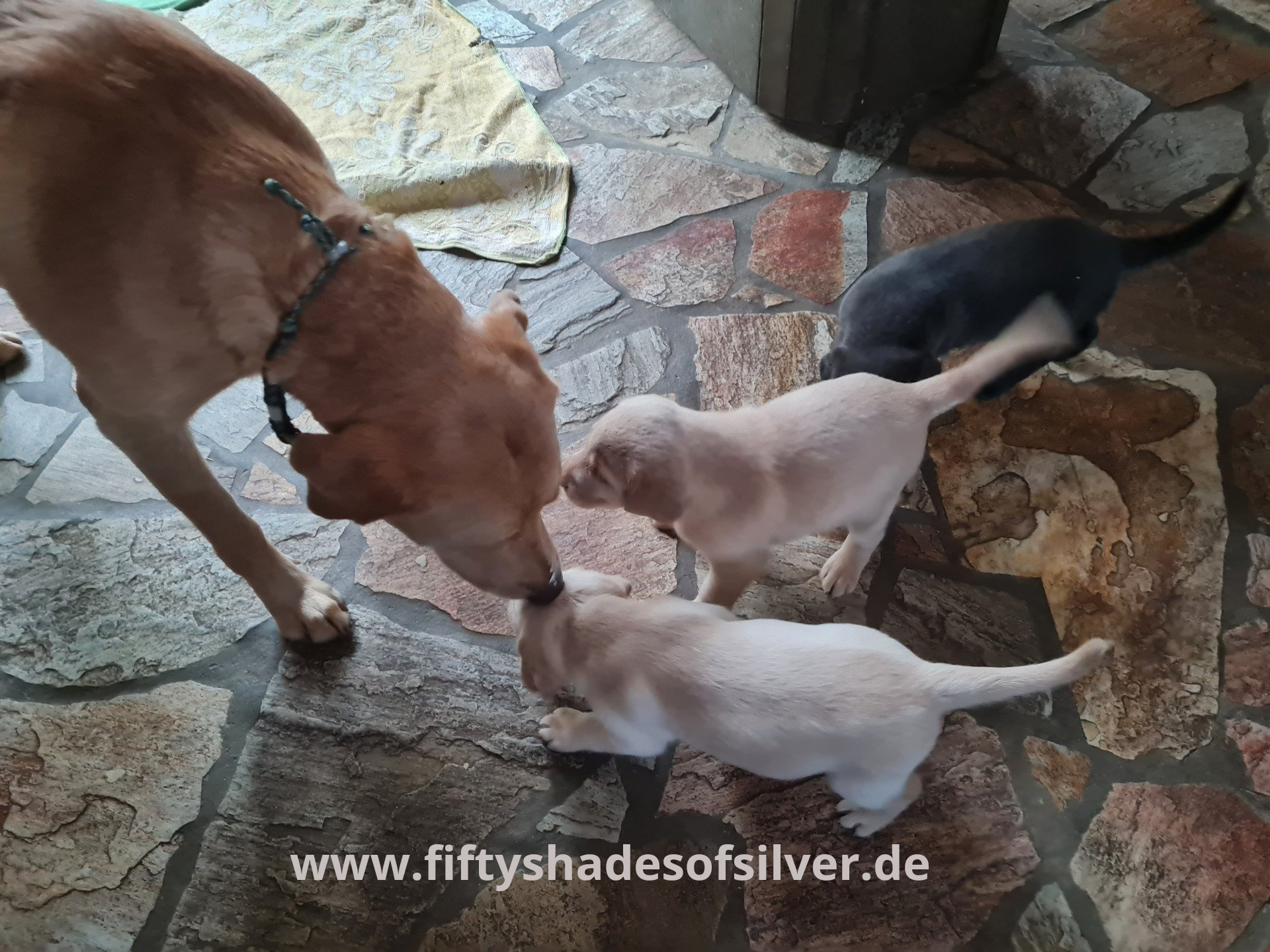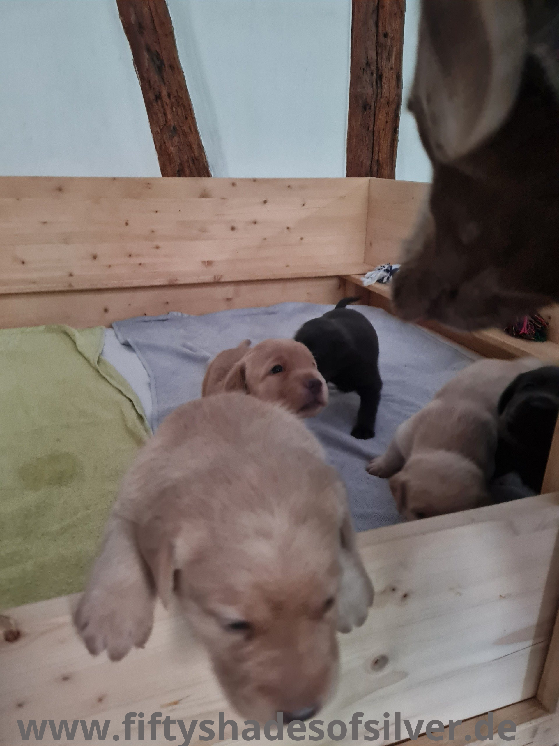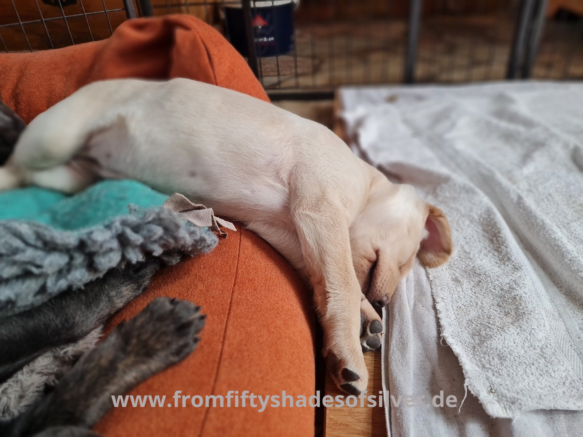 Wie einfach es sein kann, den Radius zu vergrößern, den Blickwinkel zu ändern und den Horizont zu erweitern! In der vergangenen Woche haben wir beschlossen, dass die Hundebabys die weite Welt jenseits der Wurfkiste und des kleinen Auslaufs kennenlernen dürfen. Die „Welpenwiege“ wurde abgebaut, die kleinen Labbies haben jetzt ein großes, richtiges Hundebett und Auslauf im Hof. Zu Beginn war das gleichzeitig unheimlich und aufregend. Die vielen neuen Geräusche, Gerüche und Geschmäcker haben ihre Neugier geweckt und alles wurde beschnuppert, erkundet und auch schon mal auf Geschmack getestet.