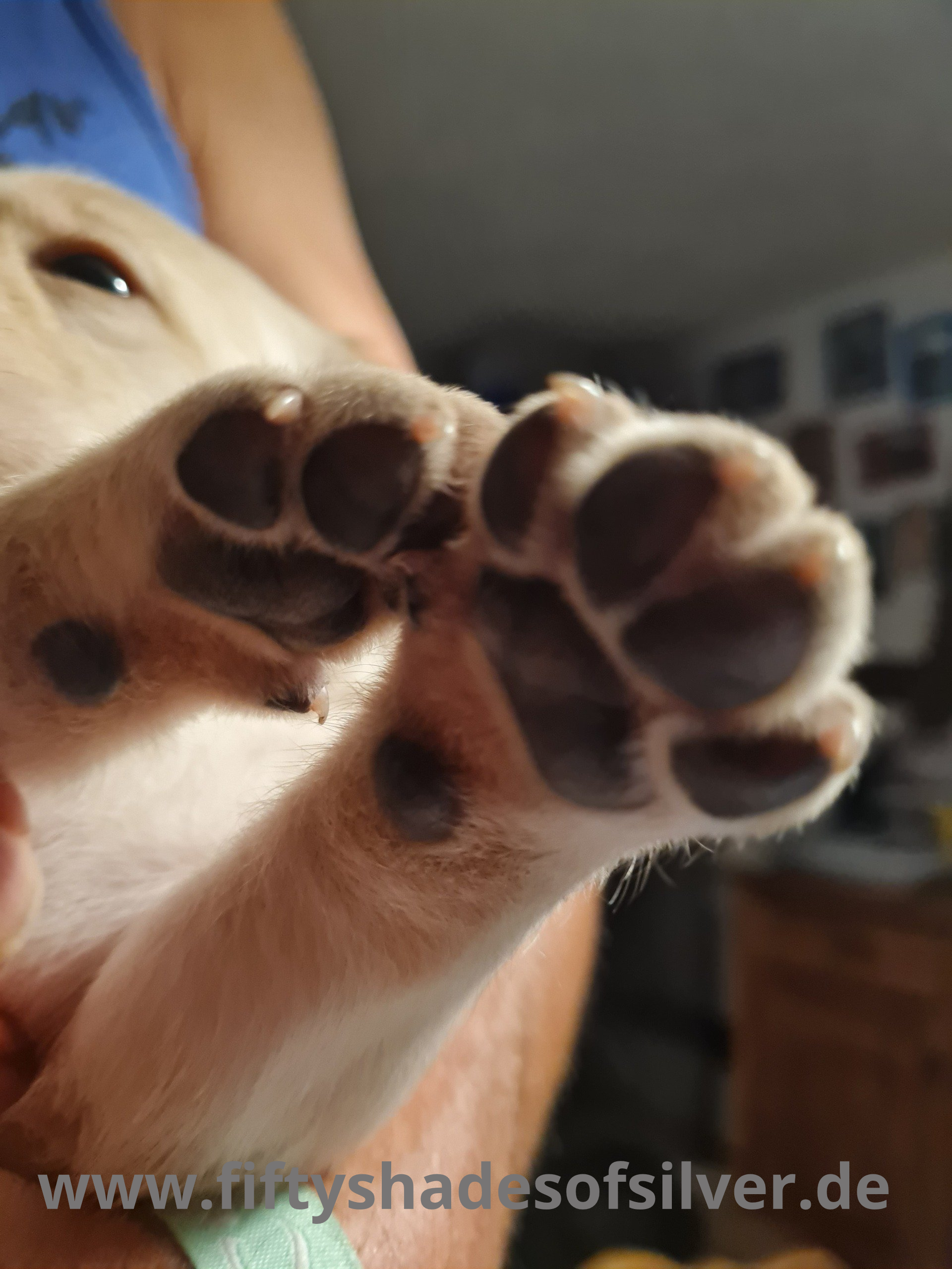 Die Krallen mussten auch schon wieder gekürzt werden, in der Wurfkiste und auf dem relativ glatten ersten Auslauf laufen die sich noch nicht ab. Und die nächste Wurmkur steht heute Abend als „Nachtisch“ auf dem Programm. Uns wird’s nicht langweilig…