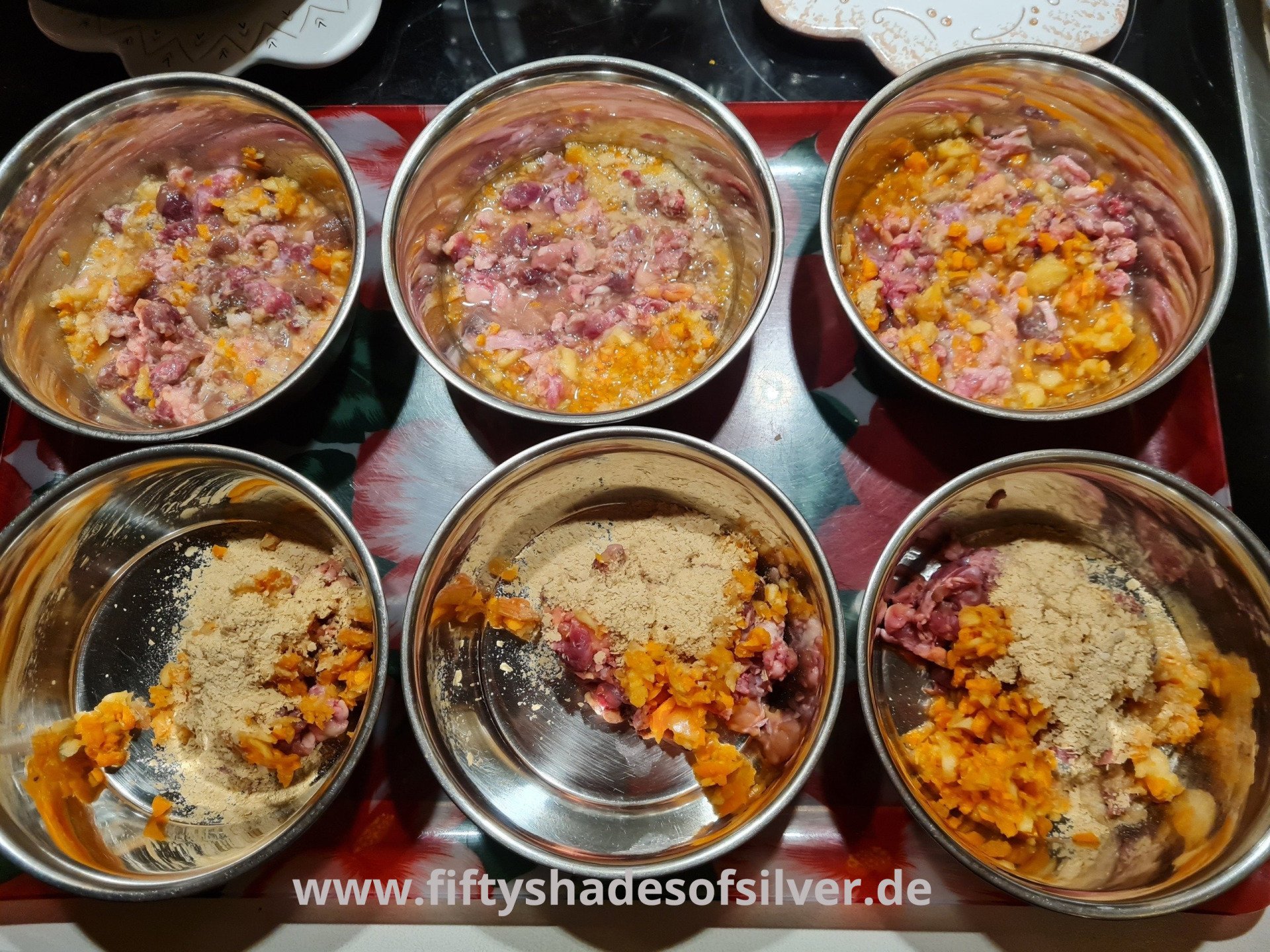 Wer träumt denn nicht von einem Sixpack? Die richtige Ernährung, gezieltes Training und eine Prise Geduld: Der Weg ist das Ziel 😉 Unser „Sixpack“ sieht das ganz anders. Der Schwerpunkt liegt auf „Ernährung“ – „richtig“ spielt da eher eine untergeordnete Rolle; hier zählt vor allem die Masse und man braucht gar nicht erst zu fragen: Darf´s ein bisschen mehr sein? Natürlich hören wir genau wie verantwortungsvolle Eltern nicht darauf und füttern unsere Kleinen mit Bedacht. Das Fleisch wird fein gewolft, das Obst/Gemüse fein püriert und alles abgewogen. Schließlich dürfen Welpen nicht zu schnell zunehmen, das schadet ihnen nur.