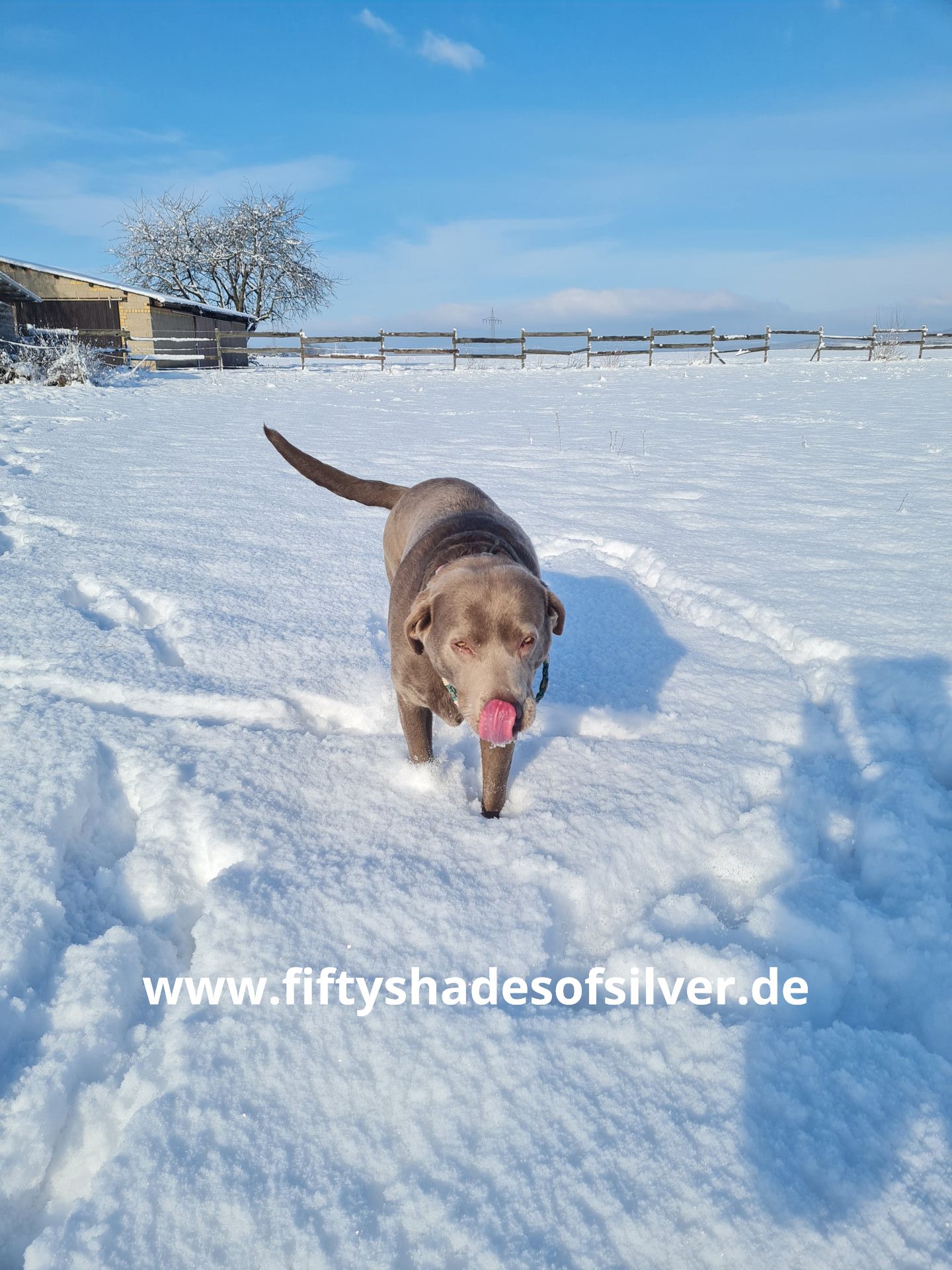 Der Tag, als wir den Wurf Welpen besichtigen konnten, um uns eine silberne Hündin auszusuchen, bleibt mir ewig in Erinnerung. Nach zwei Stunden Fahrt - Carlos in seiner Box natürlich mit an Bord - kommen wir an, betreten den Hof und sehen – 10 gleichgroße, gleichfarbige Welpen, vier Wochen alt, einer neben dem anderen am Zaun entlang aufgereiht wie Perlen an einer Schnur, einer sieht aus wie der andere (gut: außer männliche und weibliche natürlich, aber das sieht man in dem Alter und von weitem noch nicht so auf den ersten Blick...).